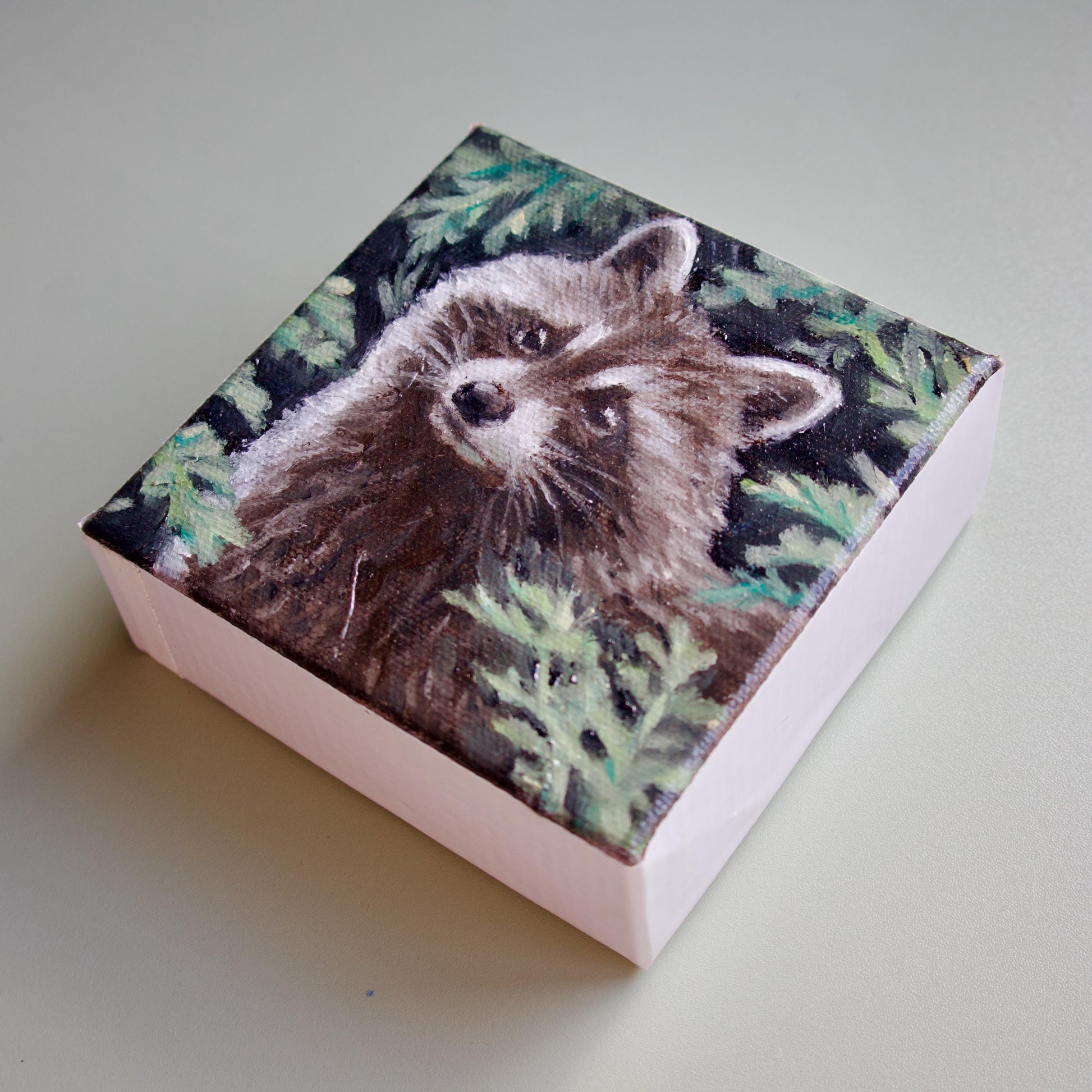 Hand-painted small raccoon oil painting original painting of animal raccoon cute artwork