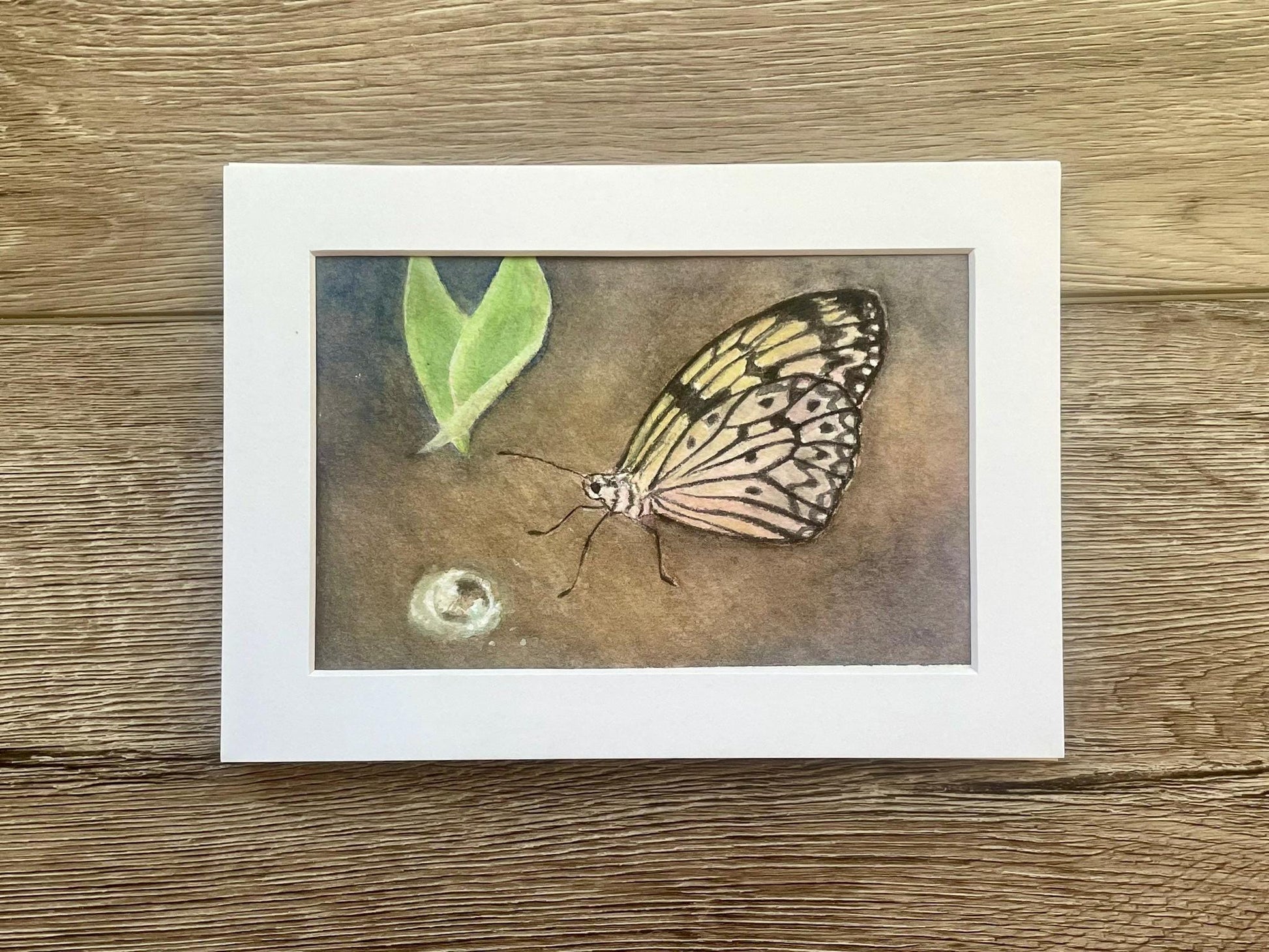 Original butterfly painting artwork With leaf and dewdrop