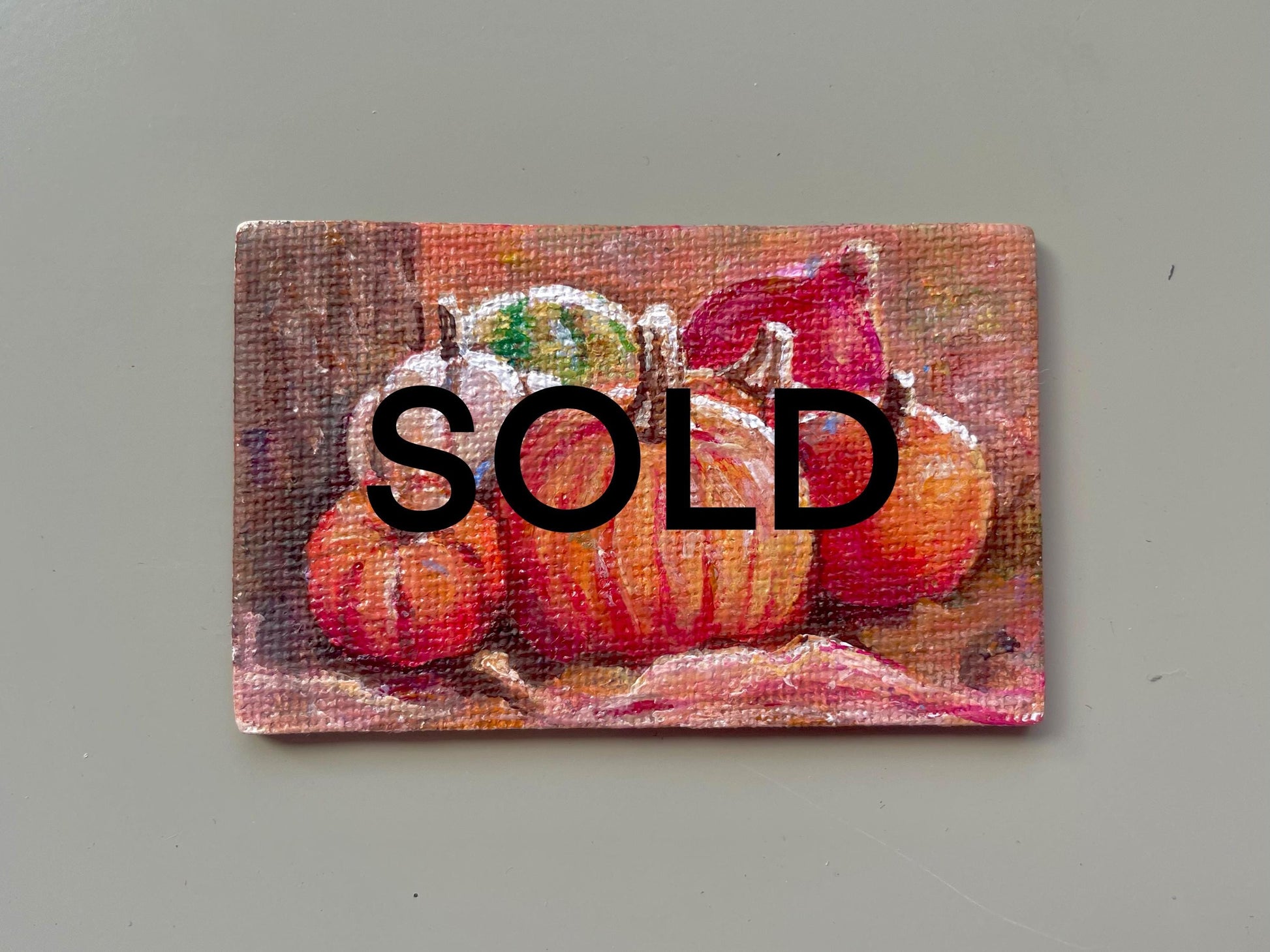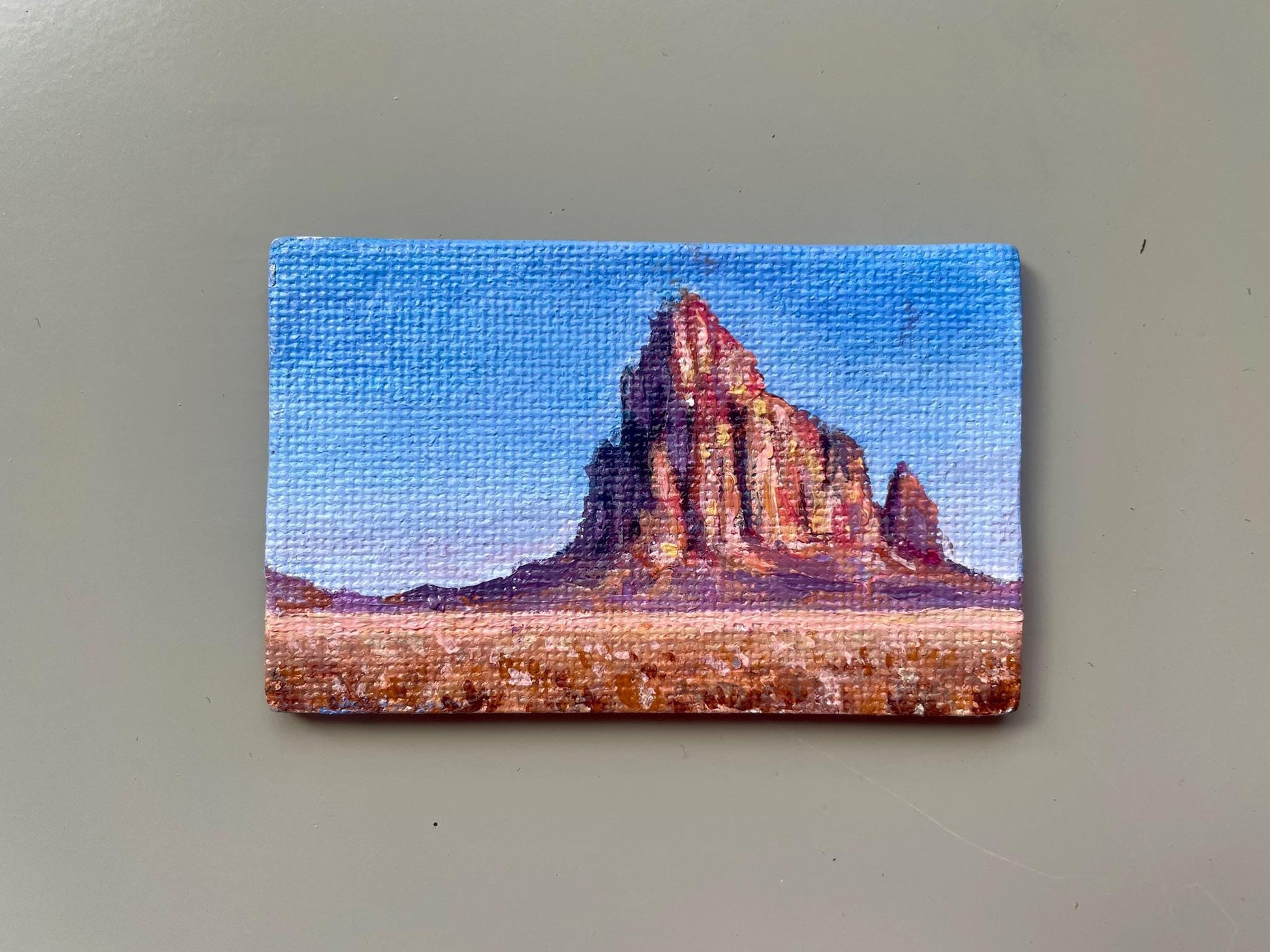 These hand-painted original artwork are on miniature magnets sized 1 3/4in. x 2 3/4in.